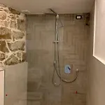 所有浴室均有坐浴盆 和淋浴. Perdas Rooms的客房俯瞰着城市.